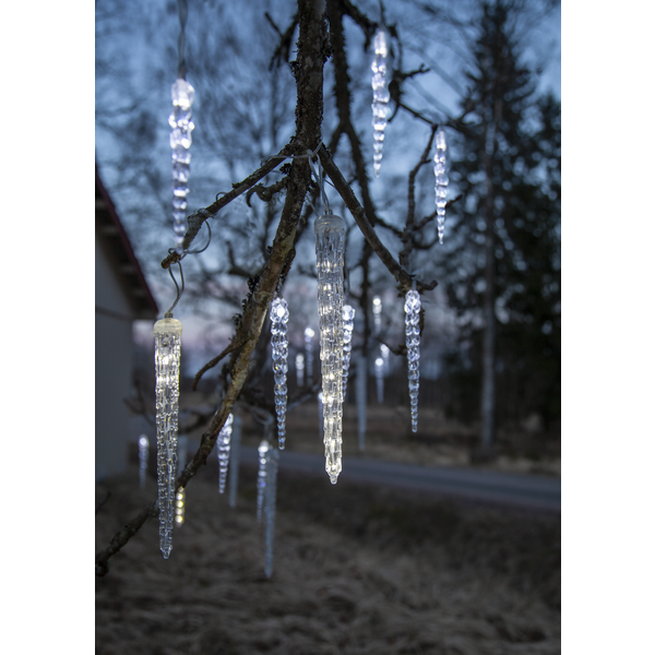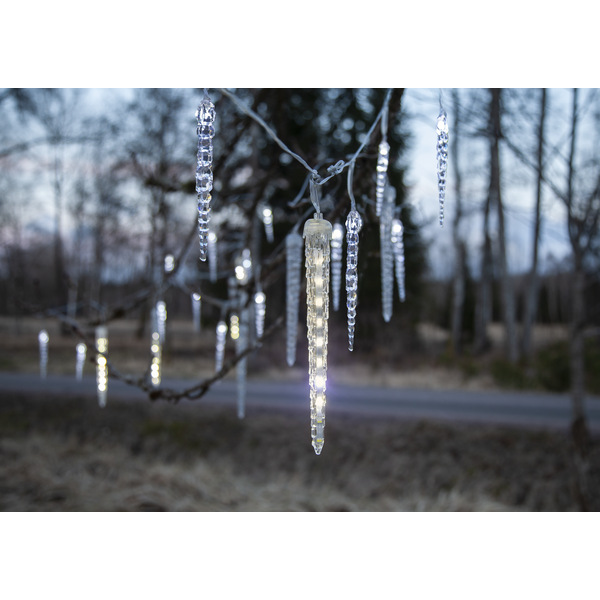 Istappsslinga Gelido från Star Trading med 24 istappar i tre olika längder. Slingan har totalt 176 LED-ljuskällor fördelade på istapparna och transparent kabel. Ljusfärgen är cool white vilket ger ett kallt vitt ljussken.